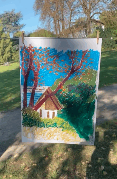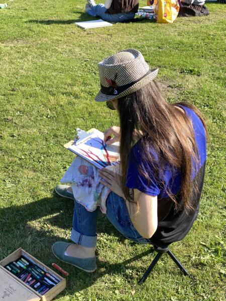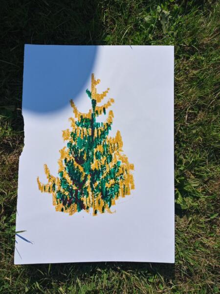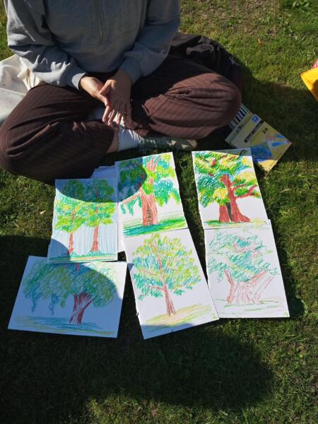Um dem entgegenzuwirken haben wir überwiegend mit groben Zeichenmaterialien wie Ölkreiden oder dicken Stiften gearbeitet.
