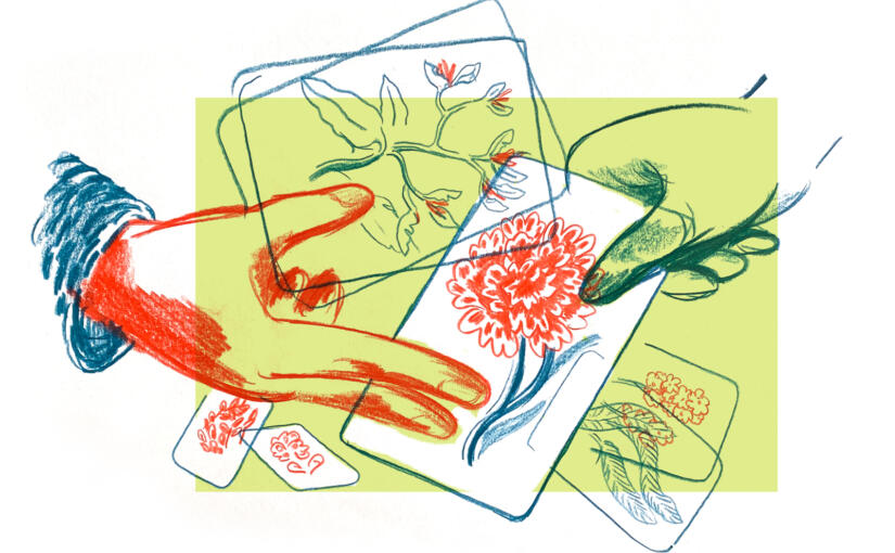 Mit kräftigen Farben zeichnen wir die Frühlingsblüher im Loki-Schmidt-Garten und gestalten unsere eigenen Tausch- und Sammelkarten.