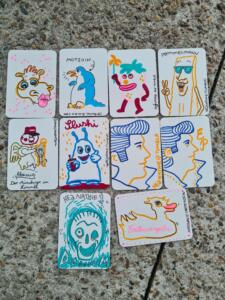 Wir nutzen die Gunst der Stunde, zeichnen sie in knalligen Farben und gestalten unsere eigenen Sammelkarten.