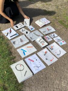 - Ein Zeichenblock mit heraustrennbaren Blättern (ca. 20 Blätter)